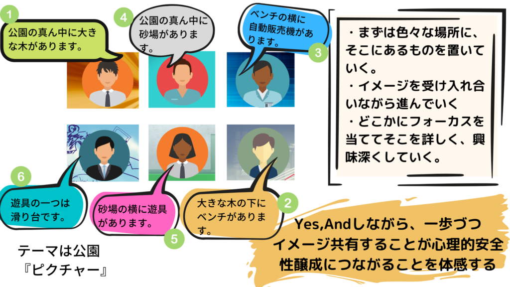 目的の共有、クラスとして何が大事なのかを対話やエクササイズで共有することで心理的安全性に必要な共有認知(共有的認知)を実施されているのがともて印象的でした。