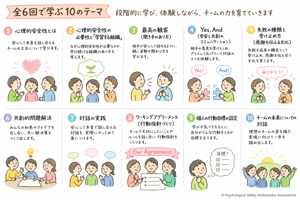 本プログラムでは、心理的安全性を軸に、